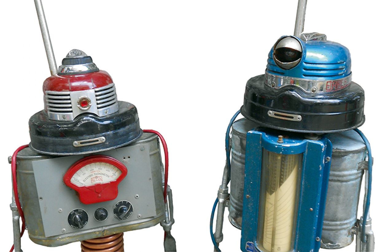 es sich um Skulpturen aus gebrauchten Gegenständen, an denen die Zeit ihre Spuren hinterlassen hat.